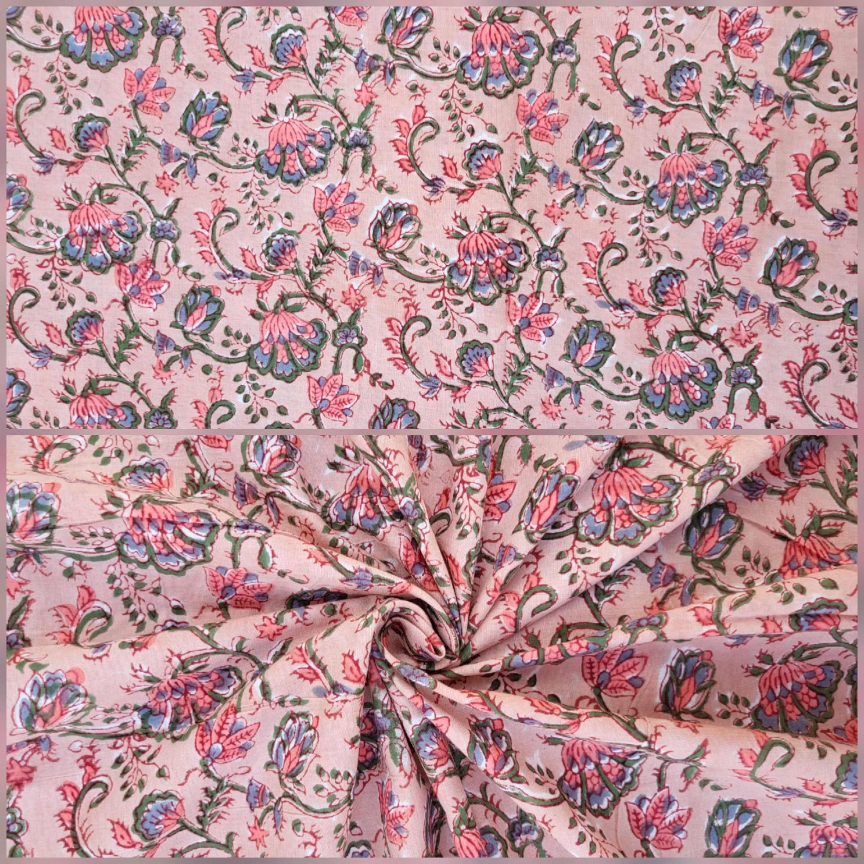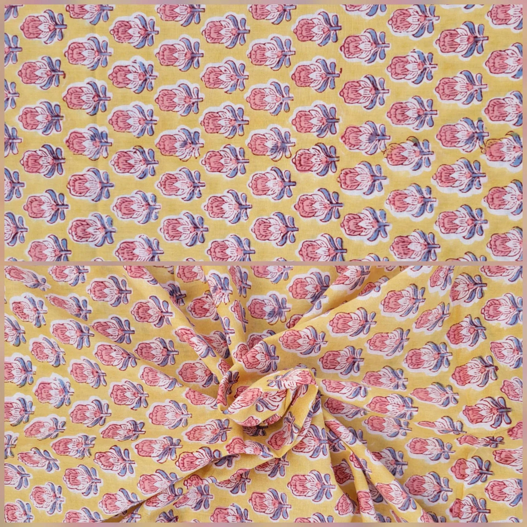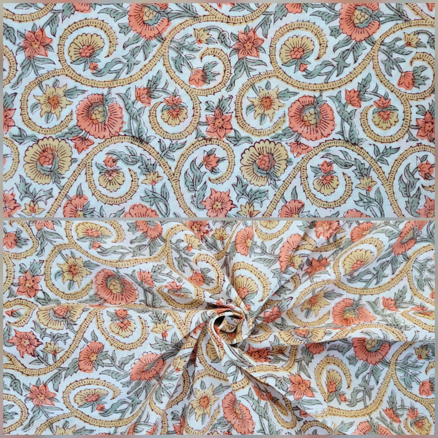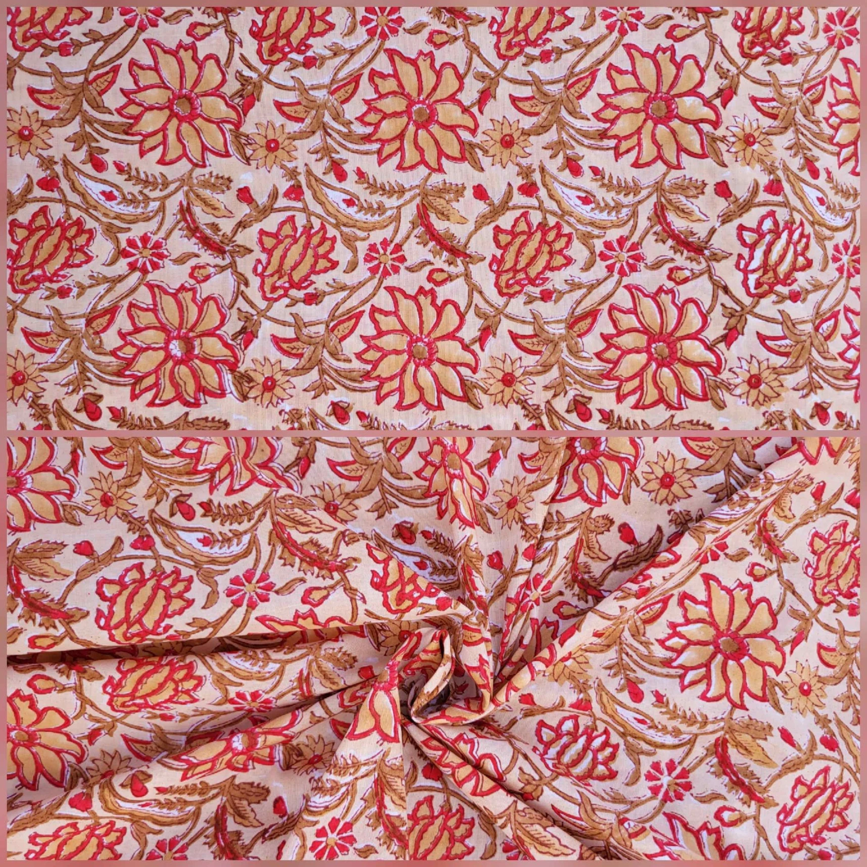 Our collection includes authentic hand block prints crafted on 100% natural cotton, created using traditional vegetal dyes and handmade by artisan families in India.