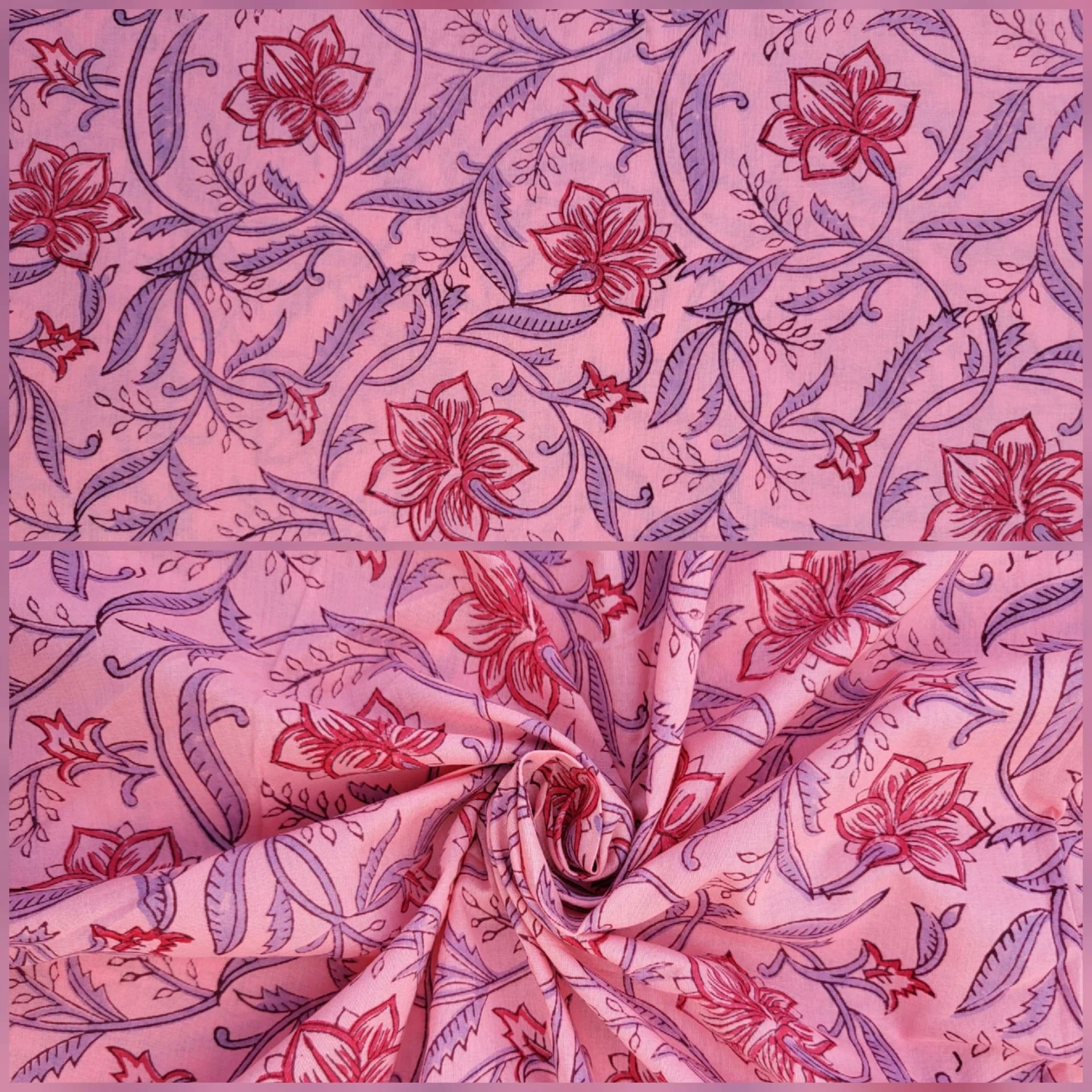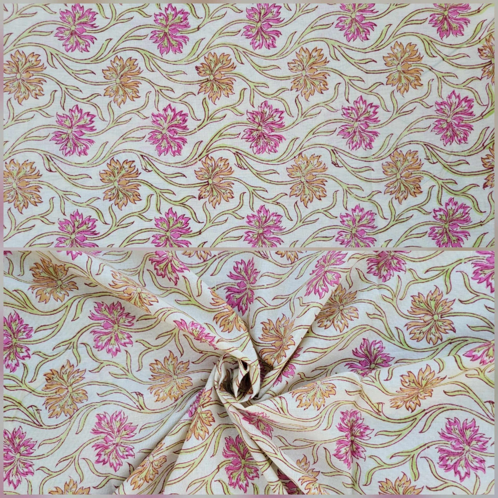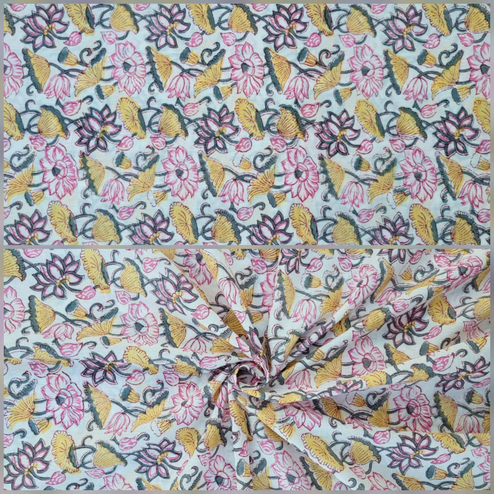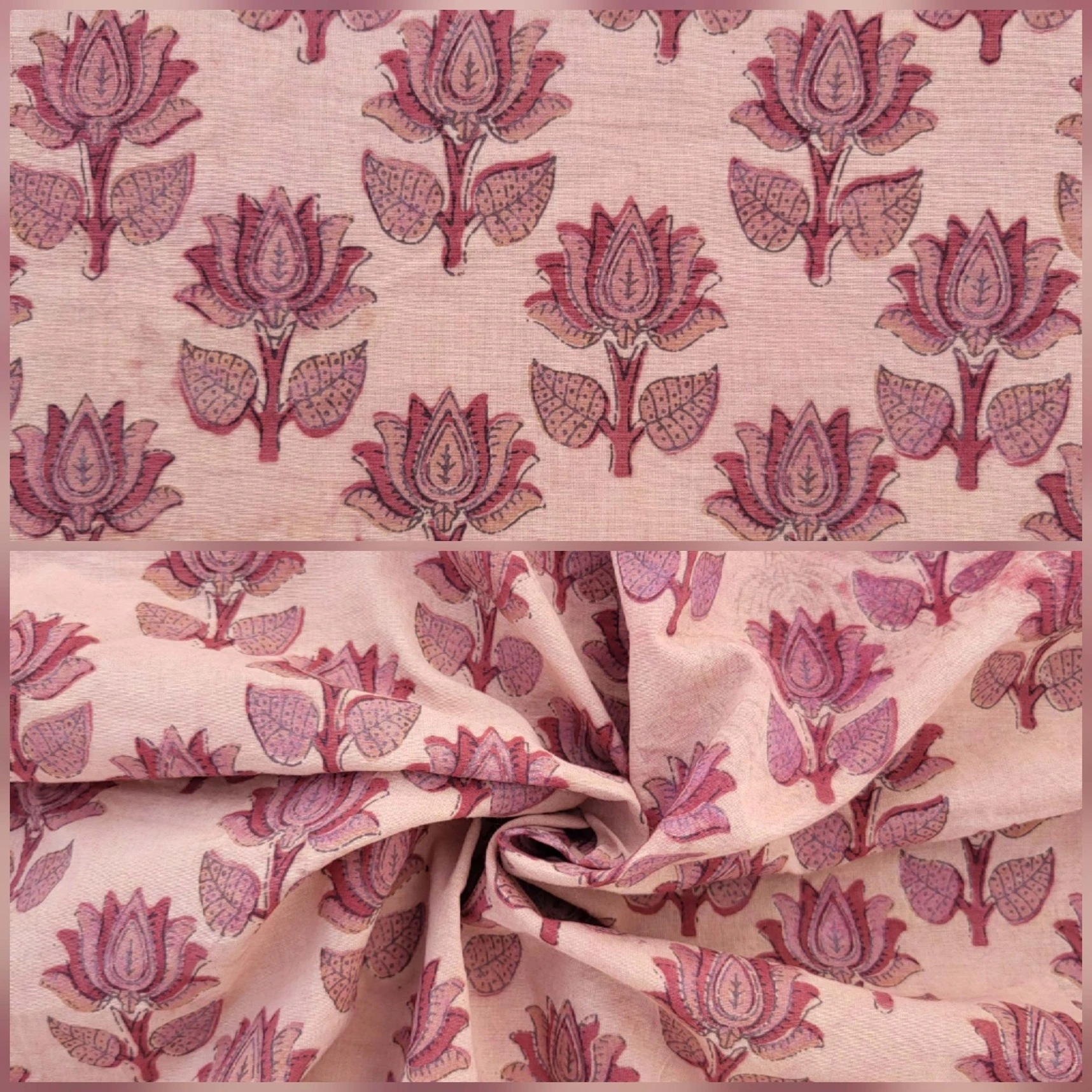 Our collection includes authentic hand block prints crafted on 100% natural cotton, created using traditional vegetal dyes and handmade by artisan families in India.