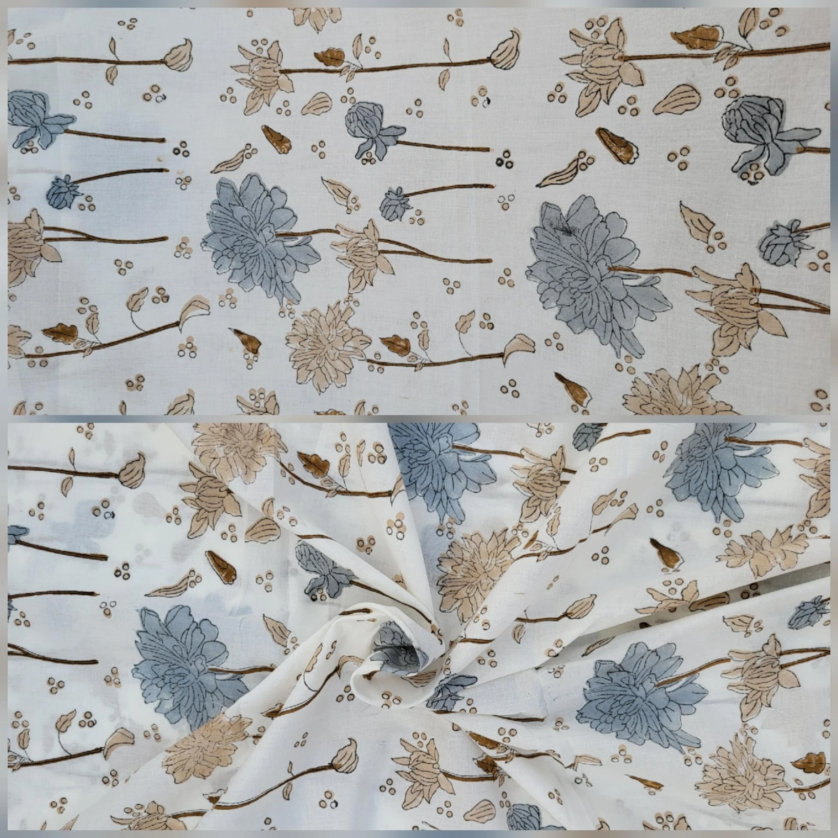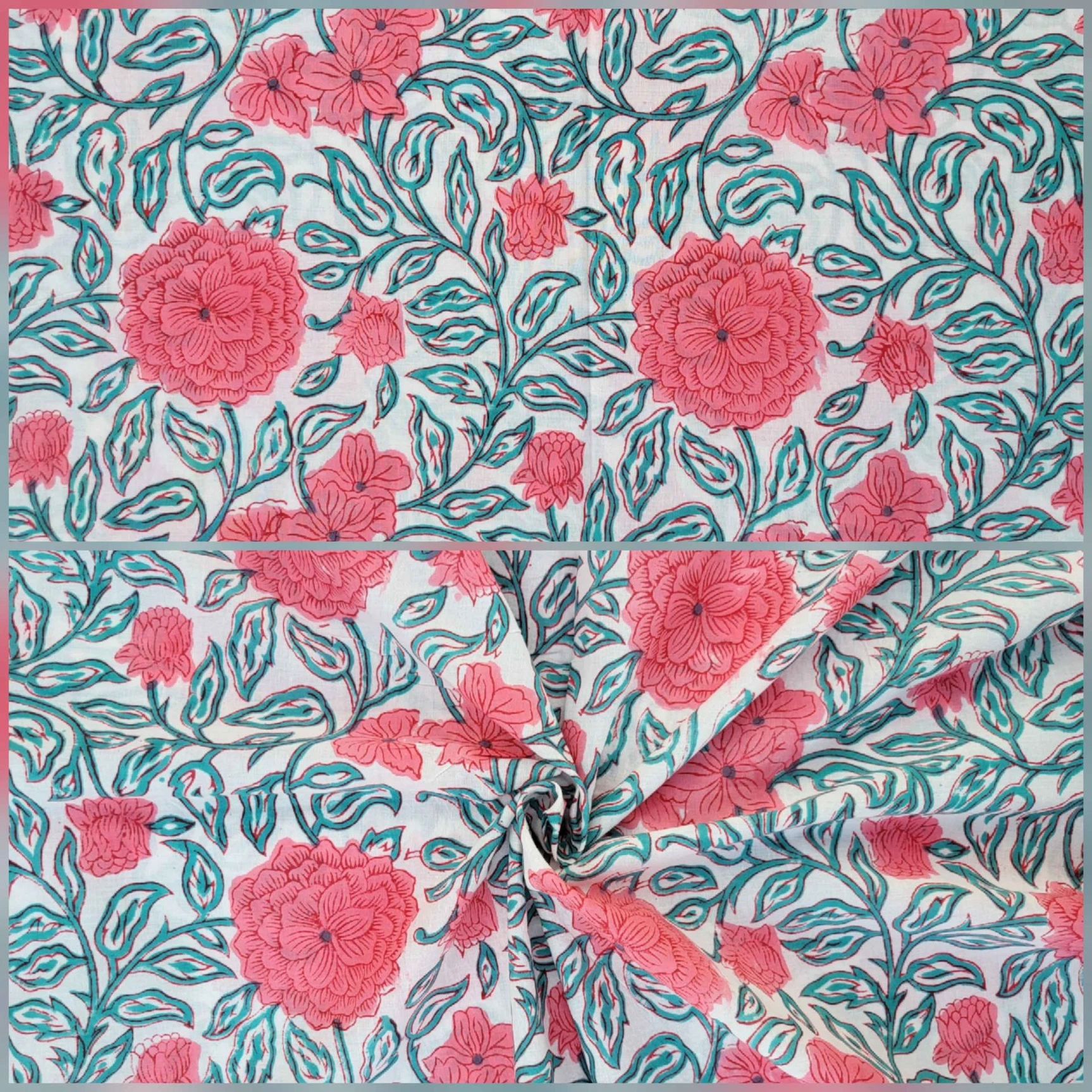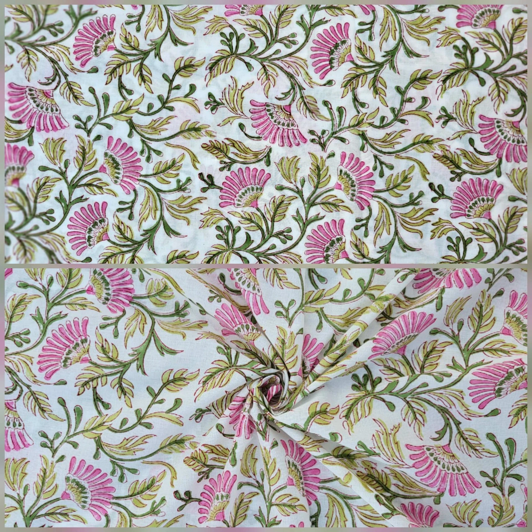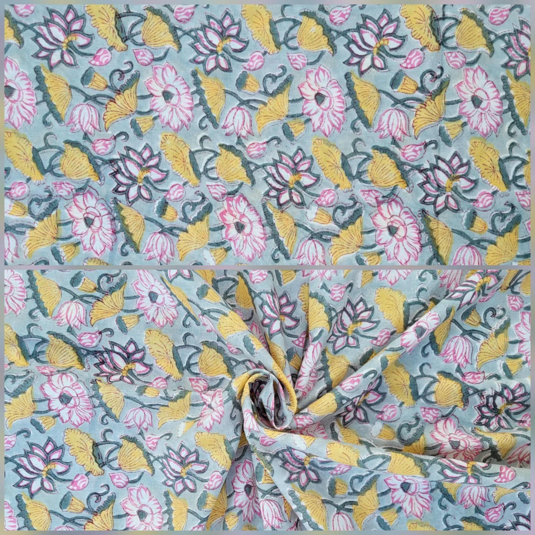 Our collection includes authentic hand block prints crafted on 100% natural cotton, created using traditional vegetal dyes and handmade by artisan families in India.