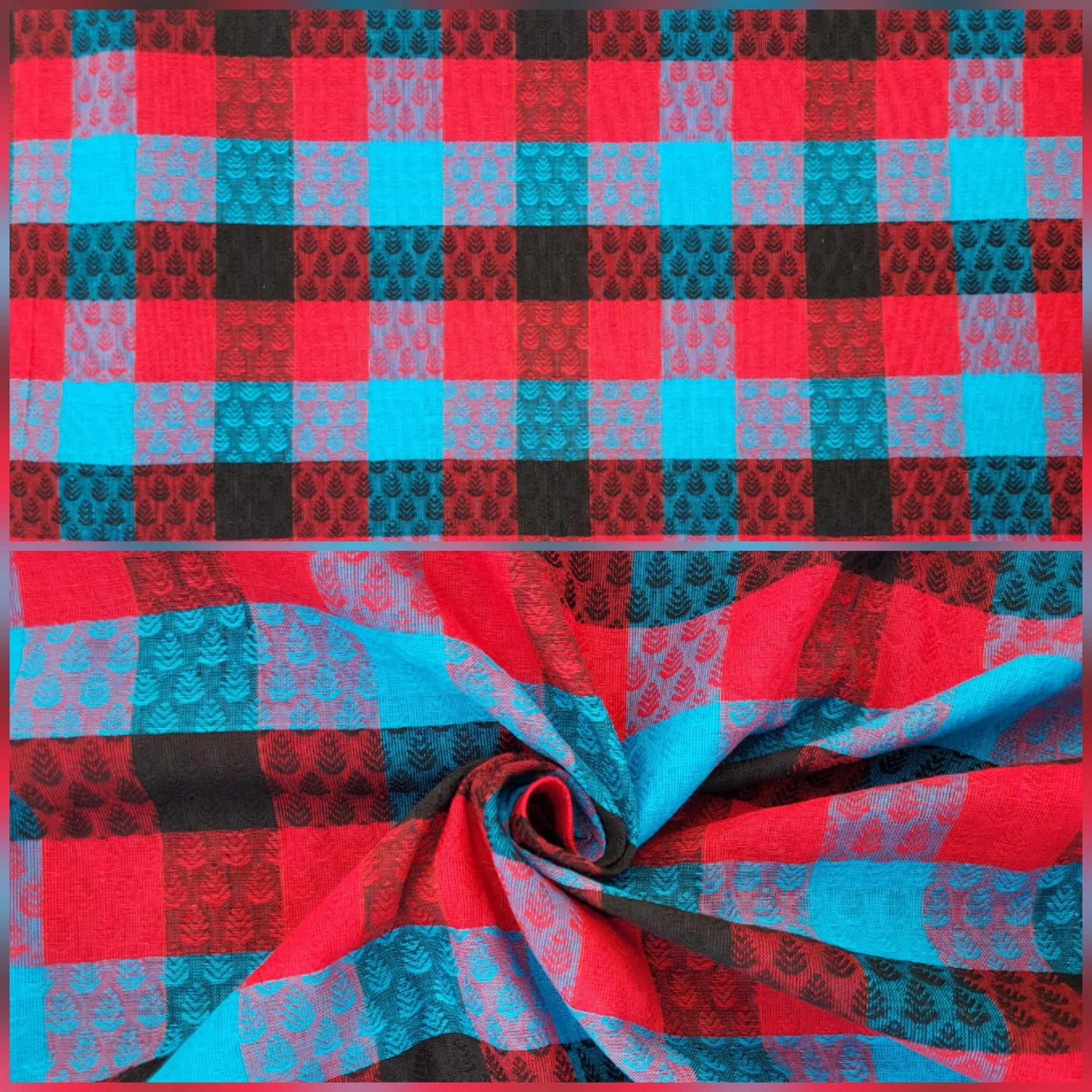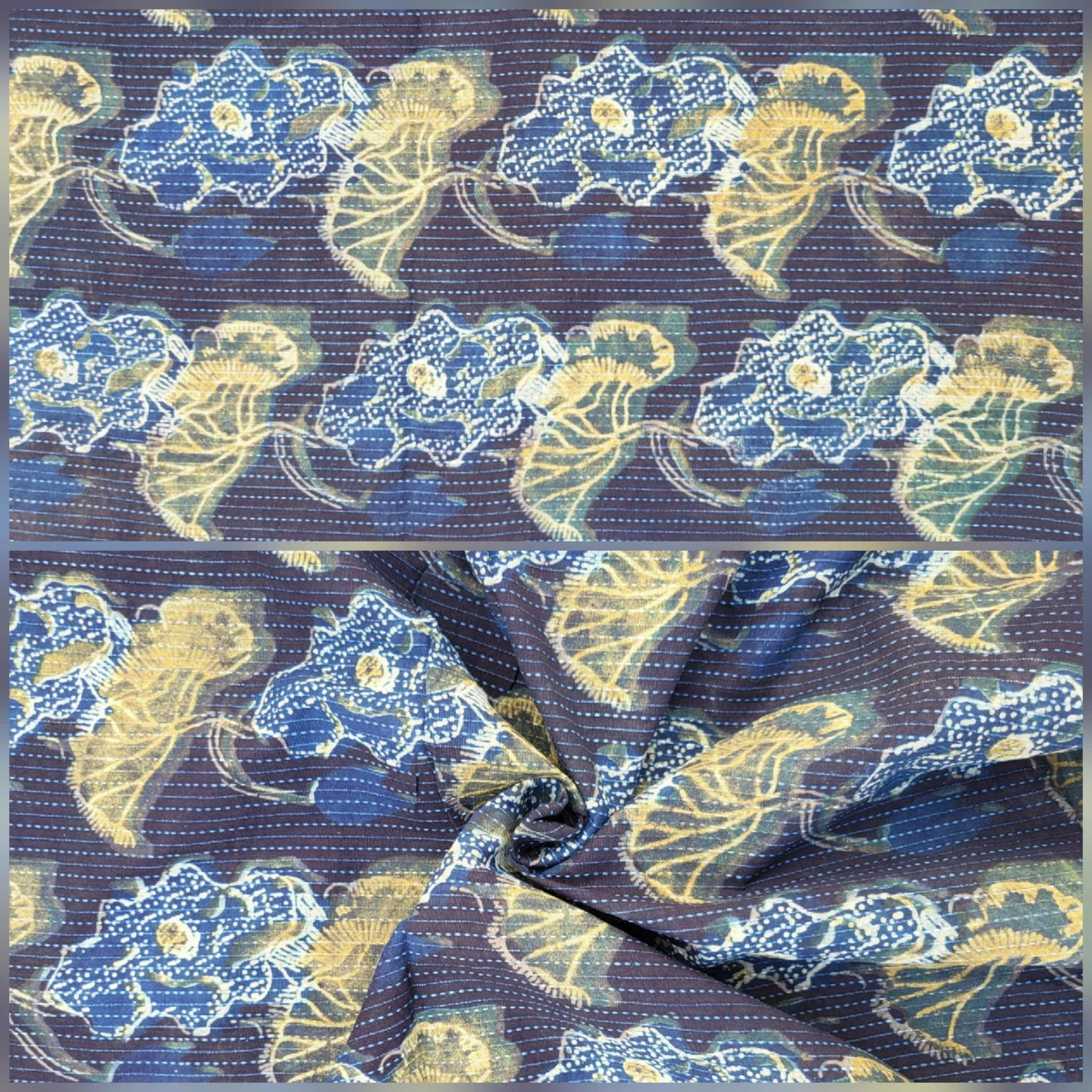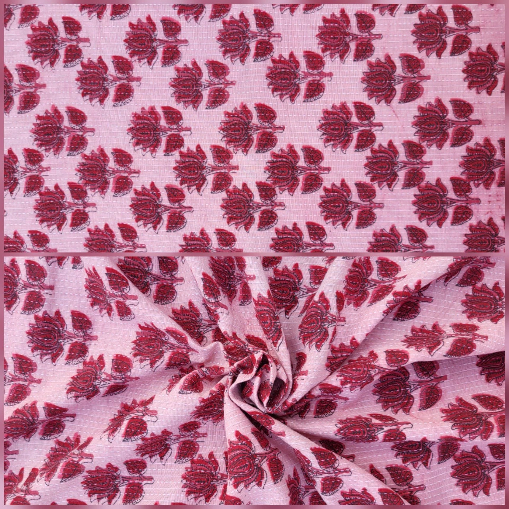 We also carry a variety of distinctive techniques and regional styles such as tie-and-dye, Bagru and Sanganer's patterns, Kalamkari's artistry, hand-stitched Kantha, Madras, Bayadère or brushed fabrics and much more!